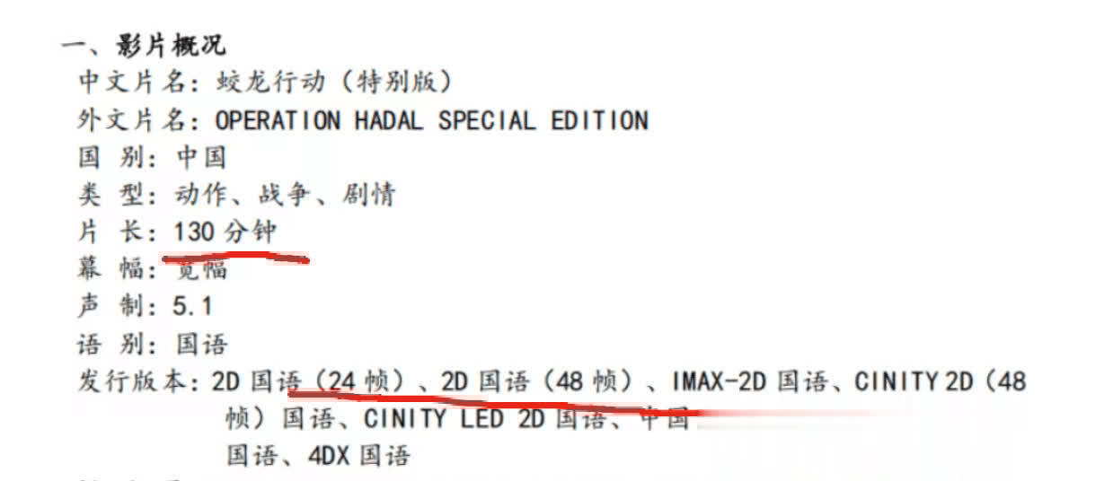 8月18日,《蛟龙行动》(特别版)的发行通知出炉,两个重大变化,增加了48帧版本,片长缩短了16分钟,“特别版”时长130分钟。
