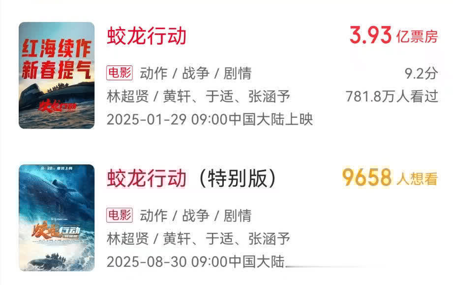 但专业平台也将春节档上映的《蛟龙行动》和这次特别版区分成两部不同的电影,而且也下发了两份不同的发行通知,证明确实是两部不同的电影。