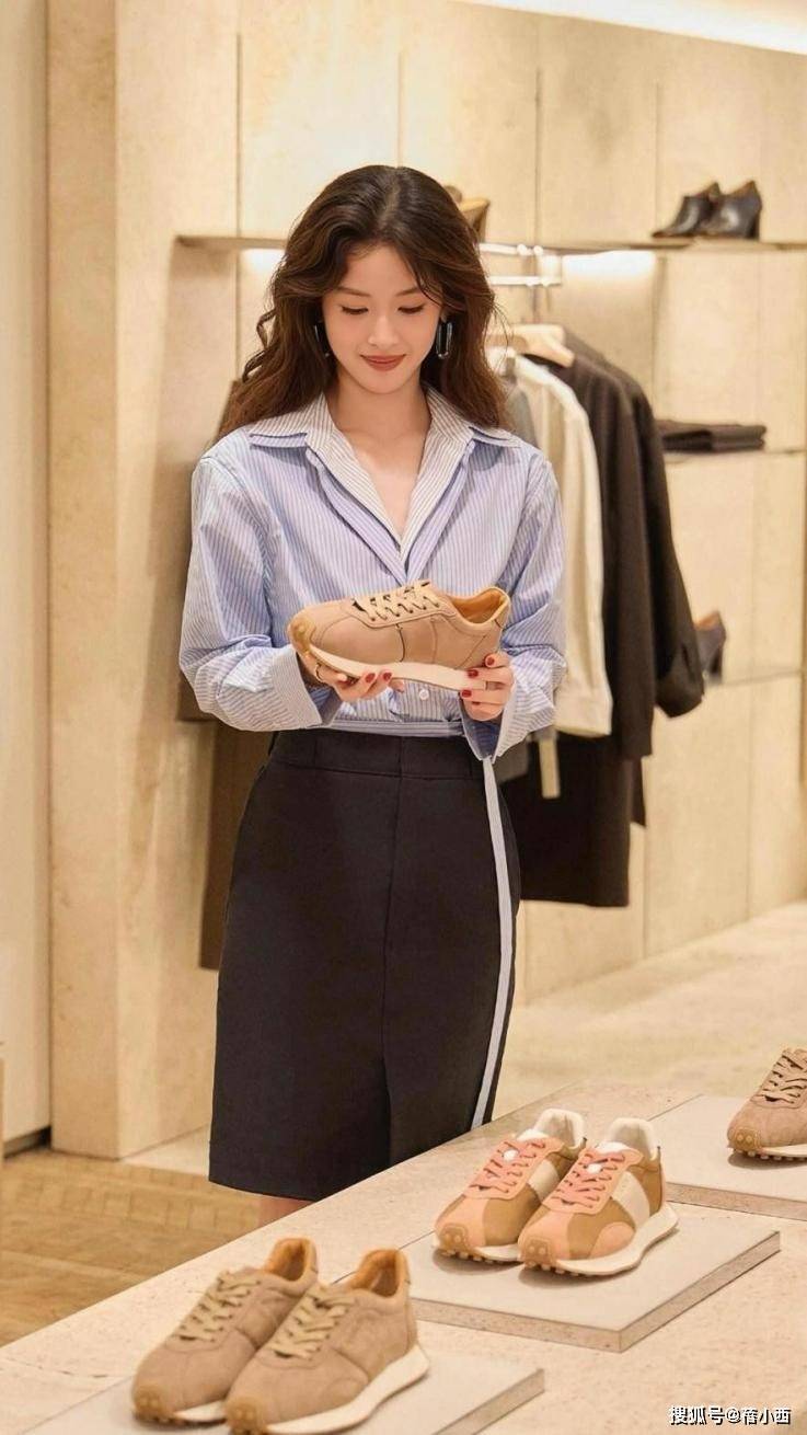 这种“低调的奢华”其实早有伏笔。去年达沃斯论坛上,她穿的蓝白条纹衬衫配黑色半身裙,被时尚博主扒出衬衫来自意大利小众品牌,面料是定制的海岛棉,光一件就要五位数。但真正厉害的是她的搭配逻辑:条纹衫的蓝白比例严格控制在3:7,刚好呼应她耳间的蓝宝石耳钉,连指甲都涂了同色系的雾面蓝——这种对细节的偏执,才是豪门穿搭的精髓。